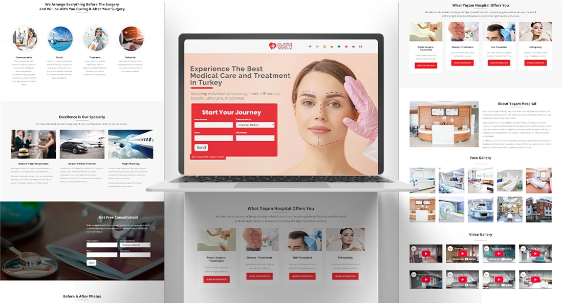 Clinic Web olarak; bireysel hekimlerden özel hastanelere, medikal estetik merkezlerinden diş kliniklerine ve sağlık turizmi acentelerine kadar sağlık alanında faaliyet gösteren tüm profesyonel yapılar için web site tasarımı hizmeti sunuyoruz.