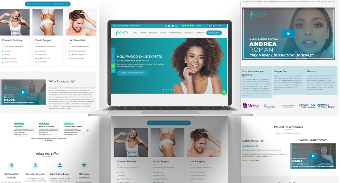 Clinic Web olarak; bireysel hekimlerden özel hastanelere, medikal estetik merkezlerinden diş kliniklerine ve sağlık turizmi acentelerine kadar sağlık alanında faaliyet gösteren tüm profesyonel yapılar için web site tasarımı hizmeti sunuyoruz.